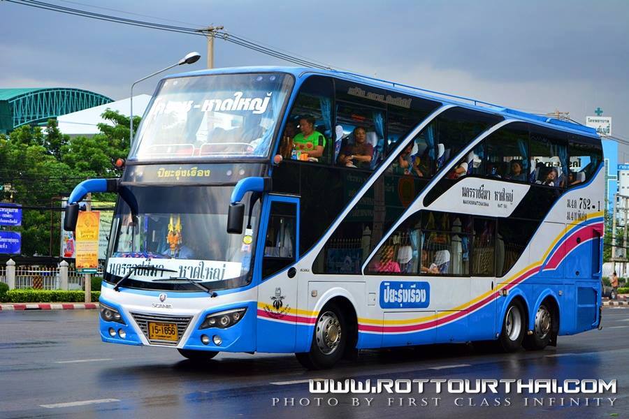 สาย 782 หาดใหญ่-นครราชสีมา Hatyai-Nakhonratchasima เวลาต้นทาง (Go) ออก-ถึง-มาตรฐาน 16.30--09.30 ปรับอากาศวีไอพี/ปรับอากาศพิเศษ เวลาปลายทาง (Back) ออก-ถึง-มาตรฐาน 17.00--09.00 ปรับอากาศวีไอพี/ปรับอากาศพิเศษ **จุดจอด หาดใหญ่-ชุมพร **จุดจอด บางใหญ่,บางบัวทอง,บางประอินทร์,วังน้อย, สระบุรี(โลตัส),กลางดง,ปากช่อง(โลตัส),สีคิ้ว,สูงเนิ น,นครราชสีมา อัตราค่าโดยสาร (Fares) 981 บาท ปรับอากาศพิเศษ (พ) 1,308 บาท ปรับอากาศวีไอพี (ก) ใช้เส้นทาง...อ.หาดใหญ่ - แยกคูหา - จ.พัทลุง(แม่ขรี) - อ.ควนขนุน - อ.ป่าพยอม - อ.จุฬาภรณ์ - แยกคอนหนองหงษ์ - อ.ทุ่งสง - แยกบ้านส้อง - อ.พุนพิน - จ.สุราษฎร์ธานี - อ.ละแม - อ.หลังสวน - อ.ทุ่งตะโก - อ.สวี - แยกปฐมพร - จ.ชุมพร - ศูนย์บริการทางหลวงเขาโพธิ์ - อ.ทับสะแก - จ.ประจวบคีรีขันธ์ - อ.กุยบุรี - อ.สามร้อยยอด - อ.ปราณบุรี - บายพาสหัวหิน - อ.ชะอำ - จ.เพชรบุรี - อ.เขาย้อย - แยกวังมะนาว - จ.สมุทรสงคราม - จ.สมุทรสาคร(มหาชัยเมืองใหม่) - พระรามสอง - วงแหวนตะวันตก - ต่างระดับบางปะอิน - อ.วังน้อย - อ.หนองแค - จ.สระบุรี - อ.แก่งคอย - อ.มวกเหล็ก - อ.ปากช่อง - อ.สีคิ้ว - อ.สูงเนิน - จ.นครราชสีมา -------------------------------------------------------------------------------------------------------------------- ![]() ![]()