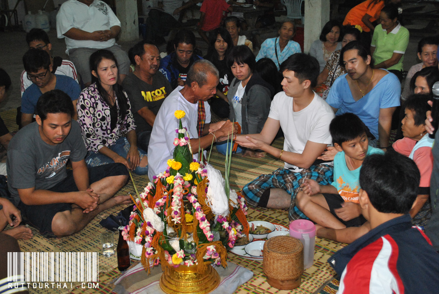 ทางชาวบ้านจัดทำพิธีบายศรีสู่ขวัญให้กับพวกเรา