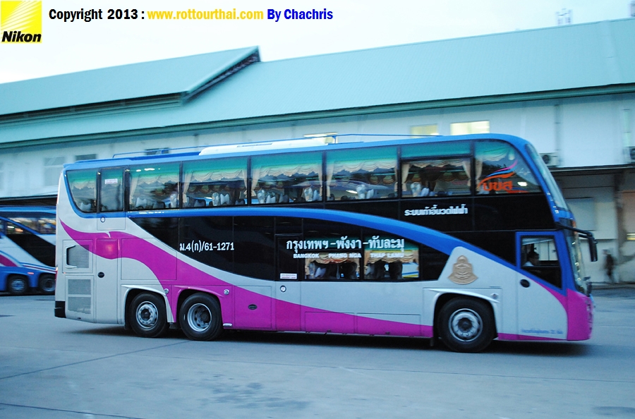 สาย 61 กรุงเทพฯ-บ้านเขาต่อ-พังงา Bkk-Bankhaotoh-Phang nga เวลาต้นทาง (Go) 19.30 ม.4ก (12 ชม.) เวลาปลายทาง (Back) 17.45 ม.4ก อัตราค่าโดยสาร (Fare) 851 บาท ปรับอากาศวีไอพี (ก) ใช้เส้นทาง พระรามสอง มหาชัย จ.สมุทรสงคราม วังมะนาว อ.เขาย้อย จ.เพชรบุรี อ.ชะอำ อ.หัวหิน อ.ปราณบุรี อ.สามร้อยยอด อ.กุยบุรี จ.ประจวบคีรีขันธ์ อ.ทับสะแก เขาโพธิ์ อ.ท่าแซะ แยกปฐมพร อ.สวี เขาปีบ อ.หลังสวน อ.ละแม อ.ไชยา แยกท่าโรงช้าง อ.พนม อ.บ้านเขาต่อ อ.ทับปุด พังงา สาย 61 กรุงเทพฯ-เขาหลัก-ทับละมุ Bkk-Khaolak-Thaplamu เวลาต้นทาง (Go) 19.30 ม.4ก (12 ชม.) เวลาปลายทาง (Back) 17.30 ม.4ก อัตราค่าโดยสาร (Fare) เขาหลัก-ทับละมุ 896 บาท ปรับอากาศวีไอพี (ก) ใช้เส้นทาง พระรามสอง มหาชัย จ.สมุทรสงคราม วังมะนาว อ.เขาย้อย จ.เพชรบุรี อ.ชะอำ อ.หัวหิน อ.ปราณบุรี อ.สามร้อยยอด อ.กุยบุรี จ.ประจวบคีรีขันธ์ อ.ทับสะแก เขาโพธิ์ อ.ท่าแซะ แยกปฐมพร อ.สวี เขาปีบ อ.หลังสวน อ.ละแม อ.บ้านตาขุน อ.พนม เขาสก บ้านรมณีย์ อ.ตะกั่วป่า บ้านบางเนียง เขาหลักลำรู่ ทับละมุ ลำแก่น -------------------------------------------------------------------------------------------------------------------- ![]() ![]() ![]()