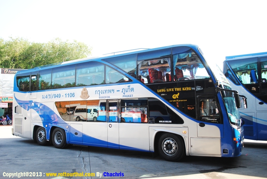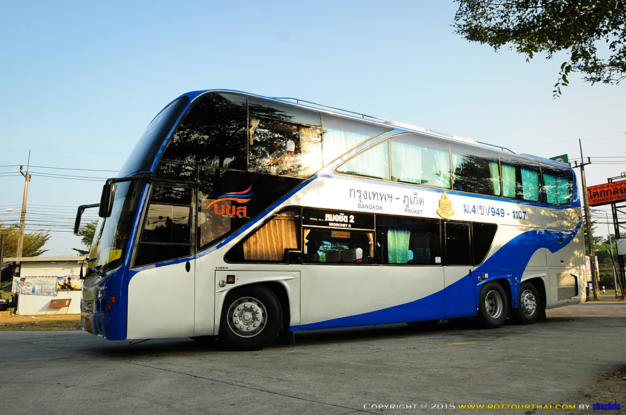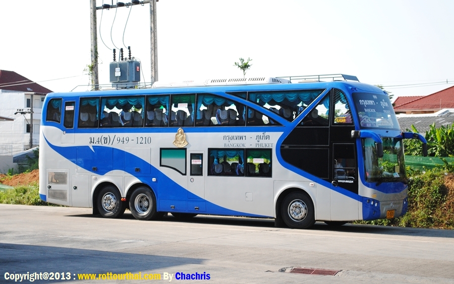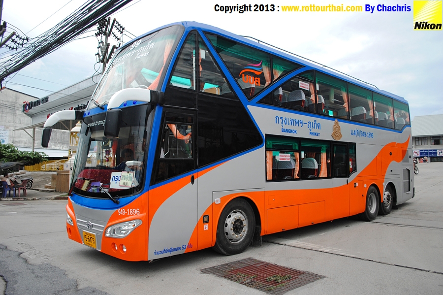 สาย 949 กรุงเทพฯ-ภูเก็ต (สายใหม่) Bkk-Phuket (New) เวลาต้นทาง (Go) 06.20,19.20 ม.4ค (12 ชม.) 07.30,16.30 ม.4ข (12 ชม.) 20.20 ม.4พ (12 ชม.) 07.30,18.00 ม.4ก (12 ชม.) เวลาปลายทาง (Back) 17.00 ม.4ข 18.30 ม.4พ 08.00,19.00 ม.4ก อัตราค่าโดยสาร (Fare) 469 บาท ปรับอากาศชั้น 2 (ค) 603 บาท ปรับอากาศชั้น 1 (ข) 704 บาท ปรับอากาศพิเศษ (พ) 938 บาท ปรับอากาศวีไอพี (ก) สาย 949 กรุงเทพฯ-พังงา-ภูเก็ต Bkk-Phangnga-Phuket เวลาต้นทาง (Go) 18.30 ม.4ข (12 ชม.) 20.00 ม.4ก (12 ชม.) เวลาปลายทาง (Back) 17.30 ม.4ข 16.00 ม.4ก อัตราค่าโดยสาร (Fare) พังงา/ภูเก็ต 547/603 บาท ปรับอากาศชั้น 1 (ข) 851/938 บาท ปรับอากาศวีไอพี (ก) สาย 949 กรุงเทพฯ(หมอชิต2)-ภูเก็ต Bkk(Mochi2)-Phuket เวลาต้นทาง (Go) 07.35,18.45 ม.4ข (12 ชม.) 18.20 ม.4ก (12 ชม.) เวลาปลายทาง (Back) 07.30,16.31 ม.4ข 18.04 ม.4ก อัตราค่าโดยสาร (Fare) 603 บาท ปรับอากาศชั้น 1 (ข) 938 บาท ปรับอากาศวีไอพี (ก) ใช้เส้นทาง พระรามสอง มหาชัย จ.สมุทรสงคราม วังมะนาว อ.เขาย้อย จ.เพชรบุรี อ.ชะอำ อ.หัวหิน อ.ปราณบุรี อ.สามร้อยยอด อ.กุยบุรี จ.ประจวบคีรีขันธ์ อ.ทับสะแก เขาโพธิ์ อ.ท่าแซะ แยกปฐมพร อ.สวี เขาปีบ อ.หลังสวน อ.ละแม แยกพุนพิน อ.บ้านตาขุน อ.พนม คลองชะอุ่น บ้านเขาต่อ บ้านปากลาว อ.ทับปุด จ.พังงา อ.ตะกั่วทุ่ง โคกกลอย อ.ถลาง ภูเก็ต -------------------------------------------------------------------------------------------------------------------- ![]() ![]() ![]() ![]() ![]() ![]() ![]() ![]() ![]() ![]() ![]() ![]() ![]() ![]() ![]() ![]()