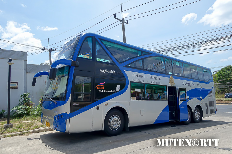 สาย 99 กรุงเทพฯ-ตะกั่วป่า-โคกกลอย Bkk-Takuapa-Kokkloy เวลาต้นทาง (Go) 20.00 ม.4ข (13 ชม.) 19.00 ม.4ก (12 ชม.) เวลาปลายทาง (Back) 16.00 ม.4ข 17.00 ม.4ก (10 ชม.) อัตราค่าโดยสาร (Fare) ตะกั่วป่า/โคกกลอย 529/583 บาท ปรับอากาศชั้น 1 (ข) 826/907 บาท ปรับอากาศวีไอพี (ก) ใช้เส้นทาง พระรามสอง มหาชัย จ.สมุทรสงคราม วังมะนาว อ.เขาย้อย จ.เพชรบุรี อ.ชะอำ อ.หัวหิน อ.ปราณบุรี อ.สามร้อยยอด อ.กุยบุรี จ.ประจวบคีรีขันธ์ อ.ทับสะแก เขาโพธิ์ อ.ท่าแซะ แยกปฐมพร อ.กระบุรี จ.ระนอง อ.กะเปอร์ อ.คุระบุรี อ.ตะกั่วป่า บ้านบางเนียง เขาหลักลำรู่ ทับละมุ ลำแก่น อ.ท้ายเหมือง โคกกลอย -------------------------------------------------------------------------------------------------------------------- ![]() ![]()