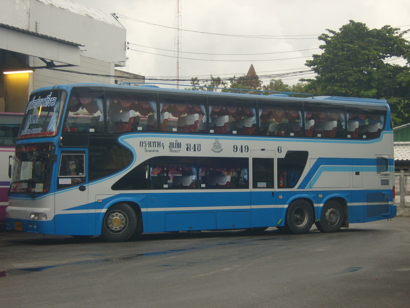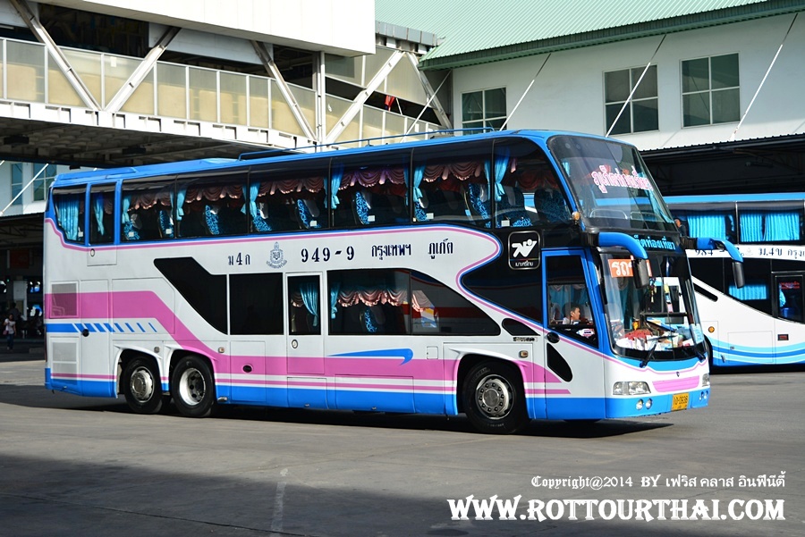 รถประจำทางหมวด 2 (Bus Group 2) ภาคใต้ (South) ***(รถสลับวันกันวิ่ง)*** ***(บางเที่ยวอาจไม่วิ่ง)*** (ขึ้นที่สายใต้ใหม่) (Sai Tai Mai) สาย 63 กรุงเทพฯ-ภูเก็ต (สายเก่า) Bkk-Phuket สาย 995 กรุงเทพฯ-ตะกั่วป่า (วิ่งถึงภูเก็ต) Bkk-Takuapa (Phuket) เวลาต้นทาง (Go) ออก--ถึง--มาตรฐาน 18.45--08.45 ปรับอากาศชั้น 1 เวลาปลายทาง (Back) ออก--ถึง--มาตรฐาน 15.30--05.30 ปรับอากาศชั้น 1 หรือ 16.30--06.30 ปรับอากาศชั้น 1 อัตราค่าโดยสาร (Fares) 666 บาท ปรับอากาศชั้น 1 (ข) ใช้เส้นทาง พระรามสอง มหาชัยเมืองใหม่ จ.สมุทรสงคราม วังมะนาว อ.เขาย้อย จ.เพชรบุรี อ.ชะอำ อ.หัวหิน อ.ปราณบุรี อ.สามร้อยยอด อ.กุยบุรี จ.ประจวบคีรีขันธ์ อ.ทับสะแก เขาโพธิ์ อ.ท่าแซะ แยกปฐมพร อ.กระบุรี จ.ระนอง อ.กะเปอร์ อ.คุระบุรี อ.ตะกั่วป่า บ้านบางเนียง เขาหลักลำรู่ ทับละมุ ลำแก่น อ.ท้ายเหมือง โคกกลอย อ.ถลาง ภูเก็ต สาย 949 กรุงเทพฯ-ภูเก็ต (สายใหม่) Bkk-Phuket (New) เวลาต้นทาง (Go) ออก--ถึง--มาตรฐาน 06.30--18.30 ปรับอากาศชั้น 1 16.30--04.30 ปรับอากาศชั้น 1 17.30--05.30 ปรับอากาศชั้น 1 17.40--05.40 ปรับอากาศวีไอพี 18.30--06.30 ปรับอากาศวีไอพี 18.45--06.45 ปรับอากาศชั้น 1 19.30--07.30 ปรับอากาศชั้น 1 19.30--07.30 ปรับอากาศวีไอพี เวลาปลายทาง (Back) ออก--ถึง--มาตรฐาน 07.00--19.00 ปรับอากาศชั้น 1 15.30--03.30 ปรับอากาศชั้น 1 16.30--04.30 ปรับอากาศชั้น 1 17.20--05.20 ปรับอากาศวีไอพี 17.30--05.30 ปรับอากาศชั้น 1 18.00--06.00 ปรับอากาศชั้น 1 18.00--06.00 ปรับอากาศวีไอพี 18.30--06.30 ปรับอากาศชั้น 1 18.30--06.30 ปรับอากาศวีไอพี 19.00--07.00 ปรับอากาศวีไอพี (ขึ้นที่หมอชิต 2) (Mochit 2) สาย 949 กรุงเทพฯ(หมอชิต 2)-ภูเก็ต Bkk-Phuket เวลาต้นทาง (Go) ออก--ถึง--มาตรฐาน 05.30--17.30 ปรับอากาศชั้น 1 18.00--06.00 ปรับอากาศวีไอพี อัตราค่าโดยสาร (Fares) 650 บาท ปรับอากาศชั้น 1 (ข) 1,011 บาท ปรับอากาศวีไอพี (ก) ใช้เส้นทาง พระรามสอง มหาชัยเมืองใหม่ จ.สมุทรสงคราม วังมะนาว อ.เขาย้อย จ.เพชรบุรี อ.ชะอำ อ.หัวหิน อ.ปราณบุรี อ.สามร้อยยอด อ.กุยบุรี จ.ประจวบคีรีขันธ์ อ.ทับสะแก เขาโพธิ์ อ.ท่าแซะ แยกปฐมพร อ.สวี อ.ทุ่งตะโก อ.หลังสวน อ.ละแม อ.บ้านตาขุน อ.พนม คลองชะอุ่น บ้านเขาต่อ บ้านปากลาว อ.ทับปุด จ.พังงา อ.ตะกั่วทุ่ง โคกกลอย อ.ถลาง ภูเก็ต