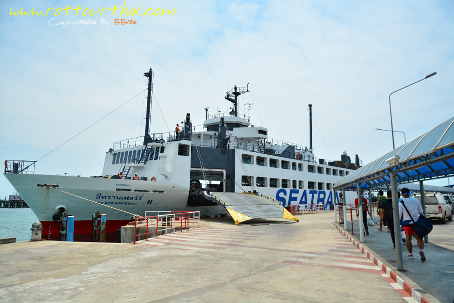 รถยนต์ รถโดยสาร นักท่องเที่ยว ต่างทยอยขึ้นจากเรือสู่เกาะ