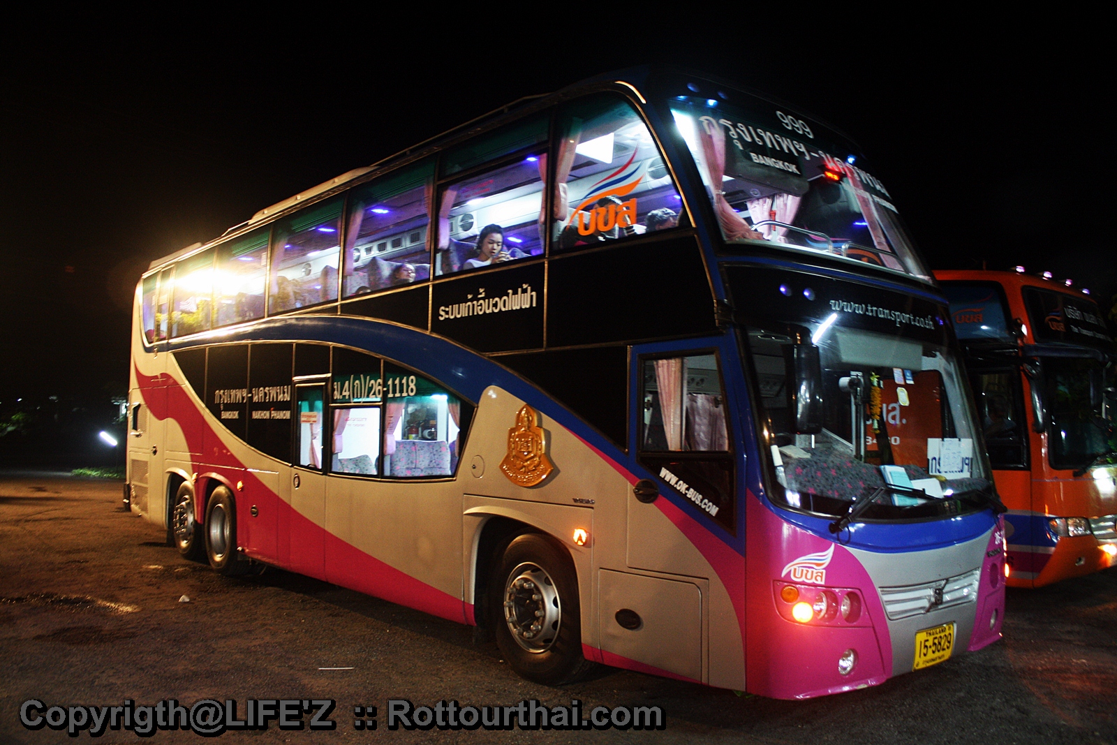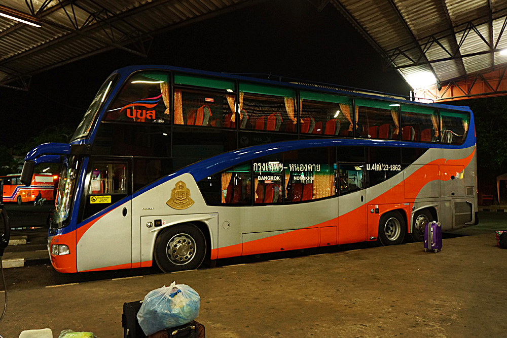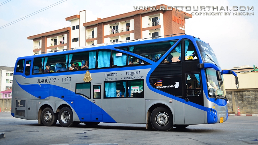 สาย 23 กรุงเทพฯ-หนองคาย Bkk-Nongkhai เวลาต้นทาง (Go) 20.35 ม.4ค (10 ชม.) 21.45 ม.4ข (10 ชม.) 20.30 ม.4ก (10 ชม.) เวลาปลายทาง (Back) 20.30 ม.4ค 20.20 ม.4ข 20.00 ม.4ก อัตราค่าโดยสาร (Fare) ขอนแก่น/อุดรธานี/หนองคาย 311/311/337 บาท ปรับอากาศชั้น 2 (ค) 320/400/434 บาท ปรับอากาศชั้น 1 (ข) 622/622/675 บาท ปรับอากาศวีไอพี (ก) ใช้เส้นทาง อ.วังน้อย อ.หนองแค หินกอง จ.สระบุรี อ.แก่งคอย อ.มวกเหล็ก อ.ปากช่อง อ.สีคิ้ว อ.สูงเนิน จ.นครราชสีมา บ้านวัด ตลาดแค อ.สีดา อ.พล อ.บ้านไผ่ จ.ขอนแก่น อ.น้ำพอง อ.เขาสวนกวาง อ.โนนสะอาด อ.กุมภวาปี จ.อุดรธานี บ้านน้ำสวย หนองสองห้อง จ.หนองคาย -------------------------------------------------------------------------------------------------------------------- ![]() ![]() ![]() ![]() ![]()