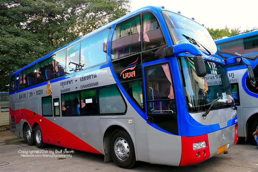 สาย 29 กรุงเทพฯ-วังสะพุง-ภูหลวง Bkk-Wangsaphung-Phuluang เวลาต้นทาง (Go) 19.30 ม.2 (8 ชม.) เวลาปลายทาง (Back) 19.00 ม.2 อัตราค่าโดยสาร (Fare) ผานกเค้า-วังสะพุง/ภูหลวง 302/314 บาท ปรับอากาศชั้น 2 ใช้เส้นทาง อ.วังน้อย อ.หนองแค หินกอง จ.สระบุรี อ.แก่งคอย อ.มวกเหล็ก อ.ปากช่อง ต่างระดับสีคิ้ว อ.ด่านขุนทด อ.จตุรัส จ.ชัยภูมิ อ.แก้งคร้อ อ.ภูเขียว อ.ชุมแพ ผานกเค้า ตาดข่า อ.หนองหิน อ.วังสะพุง ผาบิ้ง หนองคัน อ.ภูหลวง สาย 29 กรุงเทพฯ-เอราวัณ-วังสะพุง Bkk-Erawan-Wangsaphung เวลาต้นทาง (Go) 21.30 ม.2 (8 ชม.) เวลาปลายทาง (Back) 18.00 ม.2 อัตราค่าโดยสาร (Fare) เอราวัณ/วังสะพุง 308/325 บาท ปรับอากาศชั้น 2 ใช้เส้นทาง อ.วังน้อย อ.หนองแค หินกอง จ.สระบุรี อ.แก่งคอย อ.มวกเหล็ก อ.ปากช่อง ต่างระดับสีคิ้ว อ.ด่านขุนทด อ.จตุรัส จ.ชัยภูมิ อ.แก้งคร้อ อ.ภูเขียว อ.ชุมแพ ผานกเค้า ตาดข่า อ.หนองหิน อ.เอราวัณ อ.วังสะพุง สาย 29 กรุงเทพฯ-เลย Bkk-Loei เวลาต้นทาง (Go) 22.30 ม.4ก (9 ชม.) เวลาปลายทาง (Back) 21.10 ม.4ก สาย 29 กรุงเทพฯ-เลย-เชียงคาน Bkk-Loei-Chiangkhan เวลาต้นทาง (Go) 07.00,20.00,21.00**,21.30 ม.4ข (9 ชม.) 22.00,22.10** ม.4ก (9 ชม.) เวลาปลายทาง (Back) 07.30,18.30,19.00 ม.4ข 19.30 ม.4ก **(รถเสริม)** อัตราค่าโดยสาร (Fare) ผานกเค้า/เลย/เชียงคาน 347/383/398/430 บาท ปรับอากาศชั้น 1 (ข) 596*/596/619/669 บาท ปรับอากาศวีไอพี (ก) *(เก็บราคาวังสะพุง) ใช้เส้นทาง อ.วังน้อย อ.หนองแค หินกอง จ.สระบุรี อ.แก่งคอย อ.มวกเหล็ก อ.ปากช่อง ต่างระดับสีคิ้ว อ.ด่านขุนทด อ.จตุรัส จ.ชัยภูมิ อ.แก้งคร้อ อ.ภูเขียว อ.ชุมแพ ผานกเค้า ตาดข่า อ.หนองหิน อ.วังสะพุง จ.เลย ธาตุ นาซ่าว อ.เชียงคาน -------------------------------------------------------------------------------------------------------------------- ![]() ![]() ![]() ![]()