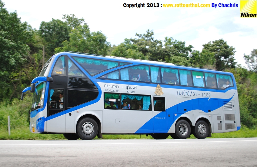 สาย 31 กรุงเทพฯ-สุรินทร์ (สายใหม่) Bkk-Surin (New) เวลาต้นทาง (Go) 07.00,20.30 ม.4ค (7 ชม.) 12.00 ม.1ข (7 ชม.) 08.30,09.30,11.00,16.45,19.00,20.00,21.40,23.00 ม.4ข (7 ชม.) 22.00 ม.1ก (7 ชม.) เวลาปลายทาง (Back) 07.30,18.30 ม.4ค 09.00 ม.1ข 08.30,10.00,12.00,19.30,21.00,22.00,23.00 ม.4ข 21.30 ม.1ก อัตราค่าโดยสาร (Fare) 241 บาท ปรับอากาศชั้น 2 310 บาท ปรับอากาศชั้น 1 (ข) 482 บาท ปรับอากาศวีไอพี (ก) ใช้เส้นทาง อ.วังน้อย อ.หนองแค หินกอง จ.สระบุรี อ.แก่งคอย อ.มวกเหล็ก อ.ปากช่อง ต่างระดับสีคิ้ว อ.ปักธงชัย อ.โชคชัย อ.นางรอง อ.ประโคนชัย อ.ปราสาท จ.สุรินทร์ สาย 31 กรุงเทพฯ-จอมพระ-สนม Bkk-Jomphra-Sanom เวลาต้นทาง (Go) 21.30 ม.2 (8 ชม.) เวลาปลายทาง (Back) 20.30 ม.2 อัตราค่าโดยสาร (Fare) สุรินทร์/จอมพระ/สนม 241/259/270 บาท ปรับอากาศชั้น 2 ใช้เส้นทาง อ.วังน้อย อ.หนองแค หินกอง จ.สระบุรี อ.แก่งคอย อ.มวกเหล็ก อ.ปากช่อง ต่างระดับสีคิ้ว อ.ปักธงชัย อ.โชคชัย อ.นางรอง อ.ประโคนชัย อ.ปราสาท จ.สุรินทร์ อ.จอมพระ อ.สนม สาย 31 กรุงเทพฯ-พนมดงรัก-กาบเชิง Bkk-Phanomdongrak-Kapchoeng เวลาต้นทาง (Go) 22.30 ม.2 (8 ชม.) อัตราค่าโดยสาร (Fare) 260 บาท ปรับอากาศชั้น 2 ใช้เส้นทาง อ.วังน้อย อ.หนองแค หินกอง จ.สระบุรี อ.แก่งคอย อ.มวกเหล็ก อ.ปากช่อง ต่างระดับสีคิ้ว อ.ปักธงชัย อ.โชคชัย อ.นางรอง อ.ประโคนชัย บ้านบักดอก อ.พนมดงรัก อ.กาบเชิง -------------------------------------------------------------------------------------------------------------------- ![]() ![]() ![]() ![]() ![]() ![]() ![]() ![]() ![]()