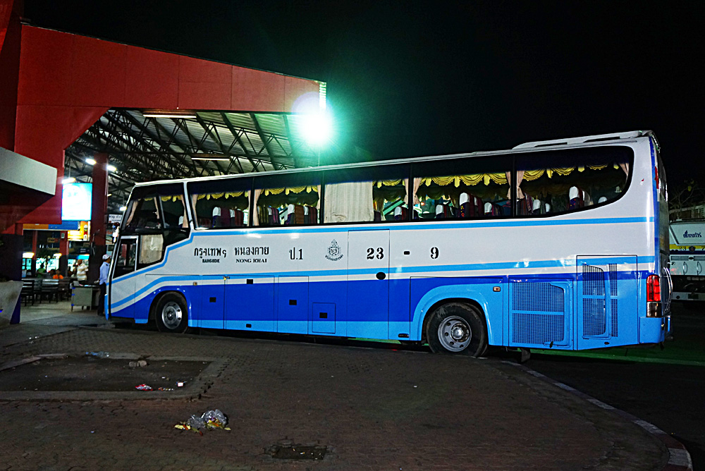 สาย 23 กรุงเทพฯ-หนองคาย Bkk-Nongkhai เวลาต้นทาง (Go) 20.30 ปรับอากาศชั้น 1 (9 ชม.) เวลาปลายทาง (Back) อัตราค่าโดยสาร (Fares) 468 บาท ปรับอากาศชั้น 1 (ข) ใช้เส้นทาง อ.วังน้อย อ.หนองแค หินกอง จ.สระบุรี อ.แก่งคอย อ.มวกเหล็ก แยกปากช่อง อ.สีคิ้ว อ.สูงเนิน จ.นครราชสีมา บ้านวัด ตลาดแค อ.สีดา อ.พล อ.บ้านไผ่ จ.ขอนแก่น อ.น้ำพอง อ.เขาสวนกวาง อ.โนนสะอาด อ.กุมภวาปี จ.อุดรธานี บ้านน้ำสวย หนองสองห้อง จ.หนองคาย -------------------------------------------------------------------------------------------------------------------- ![]()