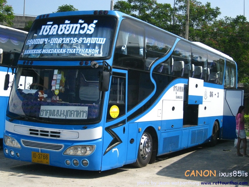 สาย 86 กรุงเทพฯ-กุดชุม-ธาตุพนม Bkk-Kudchum-Thatphanom เวลาต้นทาง (Go) 20.30 ปรับอากาศชั้น 1 เวลาปลายทาง (Back) 18.00 ปรับอากาศชั้น 1 อัตราค่าโดยสาร (Fares) กุดชุม/ธาตุพนม 464/524 บาท ปรับอากาศชั้น 1 (ข) ใช้เส้นทาง อ.วังน้อย อ.หนองแค หินกอง จ.สระบุรี อ.แก่งคอย อ.มวกเหล็ก แยกปากช่อง อ.สีคิ้ว อ.สูงเนิน จ.นครราชสีมา บ้านวัด ตลาดแค บ้านวัด อ.โนนแดง อ.ประทาย กม.0 บ้านใหม่ไชยพจน์ อ.พุทไธสง อ.พยัคฆภูมิพิสัย อ.เกษตรวิสัย อ.สุวรรณภูมิ จ.ยโสธร อ.ทรายมูล อ.กุดชุม คำเตย อ.เลิงนกทา อ.นิคมคำสร้อย จ.มุกดาหาร คำป่าหลาย อ.ธาตุพนม -------------------------------------------------------------------------------------------------------------------- ![]() ![]() ![]()