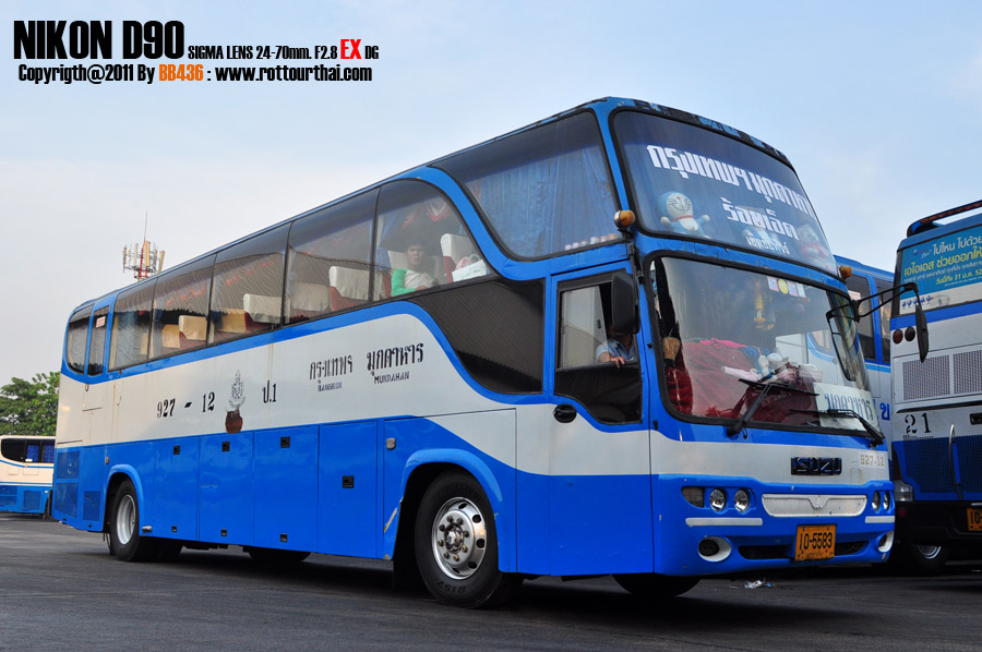 สาย 927 กรุงเทพฯ-บัวขาว Bkk-Buakhao เวลาต้นทาง (Go) 20.40 ปรับอากาศชั้น 1 เวลาปลายทาง (Back) สาย 927 กรุงเทพฯ-มุกดาหาร Bkk-Mukdahan เวลาต้นทาง (Go) 07.15 ปรับอากาศชั้น 1 เวลาปลายทาง (Back) อัตราค่าโดยสาร (Fares) บัวขาว/มุกดาหาร 446/533 บาท ปรับอากาศชั้น 1 (ข) ใช้เส้นทาง อ.วังน้อย อ.หนองแค หินกอง จ.สระบุรี อ.แก่งคอย อ.มวกเหล็ก แยกปากช่อง อ.สีคิ้ว อ.สูงเนิน จ.นครราชสีมา บ้านวัด ตลาดแค อ.สีดา อ.พล อ.บ้านไผ่ อ.กุดรัง อ.บรบือ จ.มหาสารคาม จ.ร้อยเอ็ด อ.ธวัชบุรี อ.โพนทอง บัวขาว อ.กุฉินารายณ์ อ.หนองสูง อ.คำชะอี จ.มุกดาหาร -------------------------------------------------------------------------------------------------------------------- ![]()