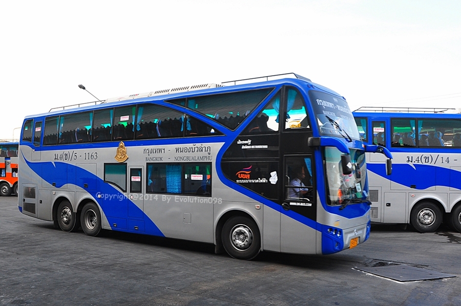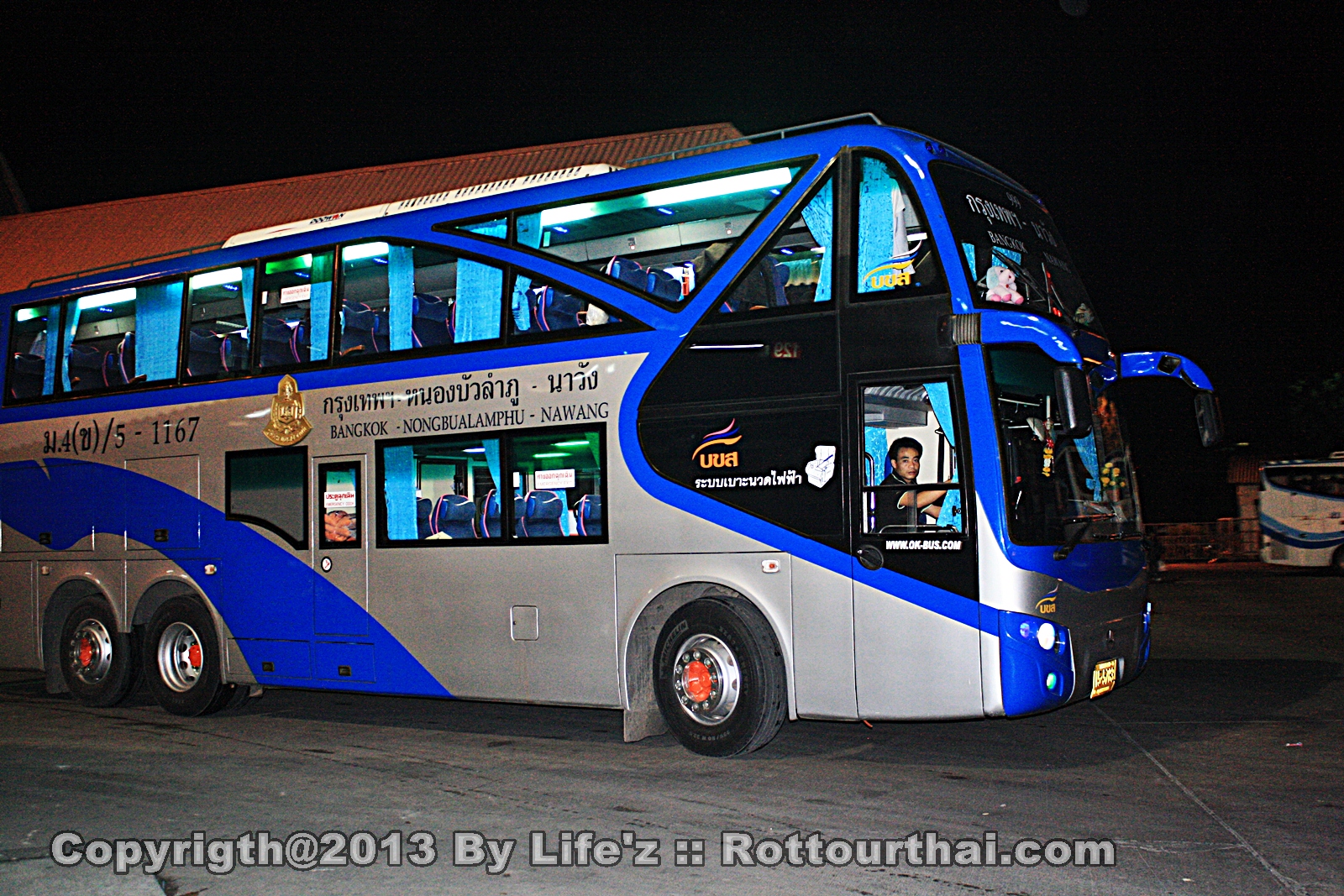 สาย 23 กรุงเทพฯ-หนองคาย Bkk-Nongkhai เวลาต้นทาง (Go) 20.35 ม.4ค (10 ชม.) 21.45 ม.4ข (10 ชม.) 20.30 ม.4ก (10 ชม.) เวลาปลายทาง (Back) 20.30 ม.4ค 20.20 ม.4ข 20.00 ม.4ก อัตราค่าโดยสาร (Fare) ขอนแก่น/อุดรธานี/หนองคาย 311/311/337 บาท ปรับอากาศชั้น 2 (ค) 320/400/434 บาท ปรับอากาศชั้น 1 (ข) 622/622/675 บาท ปรับอากาศวีไอพี (ก) ใช้เส้นทาง อ.วังน้อย อ.หนองแค หินกอง จ.สระบุรี อ.แก่งคอย อ.มวกเหล็ก อ.ปากช่อง อ.สีคิ้ว อ.สูงเนิน จ.นครราชสีมา บ้านวัด ตลาดแค อ.สีดา อ.พล อ.บ้านไผ่ จ.ขอนแก่น อ.น้ำพอง อ.เขาสวนกวาง อ.โนนสะอาด อ.กุมภวาปี จ.อุดรธานี บ้านน้ำสวย หนองสองห้อง จ.หนองคาย -------------------------------------------------------------------------------------------------------------------- ![]() ![]() ![]() ![]() ![]()