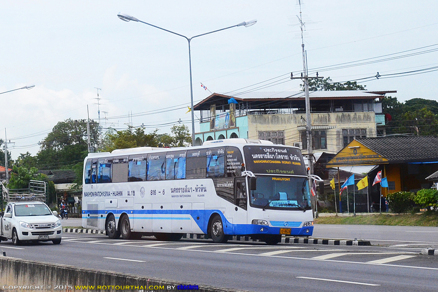 สาย 816 นครราชสีมา-หัวหิน เที่ยว1--เที่ยว2--เที่ยว3--ปลายทาง 10.00--14.00--22.00 นคราชสีมา 11.10--15.10--23.10 ปากช่อง 12.10--16.00--24.00 สระบุรี 14.00--18.00--02.00 กำแพงแสน 14.20--18.20--02.20 นครปฐม 15.00--19.00--03.00 ราชบุรี 15.50--19.50--03.50 เพชรบุรี 16.40--20.40--04.40 ชะอำ 17.00--21.00--05.00 ประกิจยนต์หัวหิน สาย 816 หัวหิน-นครราชสีมา เที่ยว1--เที่ยว2--เที่ยว3--ปลายทาง 08.15--10.00--21.00 ประกิจยนต์หัวหิน 08.35--10.20--21.20 ชะอำ 09.00--10.45--21.45 เพชรบุรี 09.45--11.30--22.30 ราชบุรี 10.25--12.10--23.10 นครปฐม 10.45--12.30--23.30 กำแพงแสน 13.15--15.00--02.00 สระบุรี 14.00--16.00--03.00 ปากช่อง 15.15--17.00--04.00 นครราชสีมา อัตราค่าโดยสาร 401 บาท ปรับอากาศชั้น 1 (ข) ใช้เส้นทาง จ.นคราชสีมา อ.ปากช่อง จ.สระบุรี อ.กำแพงแสน จ.นครปฐม จ.ราชบุรี จ.เพชรบุรี อ.ชะอำ อ.หัวหิน