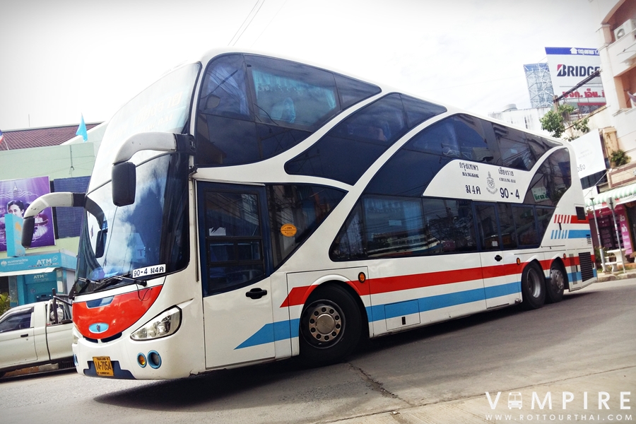 (Mochit 2 & Vipawadee) สาย 90 กรุงเทพฯ-เชียงราย (สายเก่า) Bkk-Chiangrai เวลาต้นทาง (Go) หมอชิต2-วิภาวดี-ถึง-มาตรฐาน 06.30--06.50--18.30 Smart Class 07.00--07.20--19.00 Super Class ---------17.35--05.15 Super Class เวลาปลายทาง (Back) ออก-ถึง-มาตรฐาน 07.00--19.00 Smart Class 08.30--20.30 Super Class 17.00--05.00 Super Class อัตราค่าโดยสาร (Fares) Smart Class 456 บาท ปรับอากาศชั้น 2 (ค) Super Class 685 บาท ปรับอากาศพิเศษ (พ) ใช้เส้นทาง สายเอเชีย แยกอยุธยา แยกอ่างทอง แยกสิงห์บุรี แยกอินทร์บุรี แยกชัยนาท จ.นครสวรรค์ สลกบาตร อ.คลองขลุง จ.กำแพงเพชร อ.วังเจ้า จ.ตาก อ.บ้านตาก ปากทางเขื่อนภูมิพลฯ อ.แม่พริก อ.เถิน อ.สบปราบ อ.เกาะคา จ.ลำปาง อ.งาว จ.พะเยา อ.แม่ใจ อ.พาน ปากทางแม่สรวย จ.เชียงราย ---------------------------------------------------------------------------------------------------------------- ![]() ![]() ![]() ![]() ![]() ![]() ![]() ![]() ![]() ![]() ![]() ![]() ![]() ![]()
