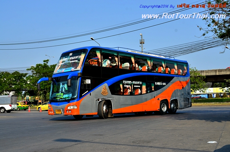สาย 23 กรุงเทพฯ-หนองคาย Bkk-Nongkhai เวลาต้นทาง (Go) 20.35 ม.4ค (10 ชม.) 21.45 ม.4ข (10 ชม.) 20.30 ม.4ก (10 ชม.) เวลาปลายทาง (Back) 20.30 ม.4ค 20.20 ม.4ข 20.00 ม.4ก อัตราค่าโดยสาร (Fare) ขอนแก่น/อุดรธานี/หนองคาย 311/311/337 บาท ปรับอากาศชั้น 2 (ค) 320/400/434 บาท ปรับอากาศชั้น 1 (ข) 622/622/675 บาท ปรับอากาศวีไอพี (ก) ใช้เส้นทาง อ.วังน้อย อ.หนองแค หินกอง จ.สระบุรี อ.แก่งคอย อ.มวกเหล็ก อ.ปากช่อง อ.สีคิ้ว อ.สูงเนิน จ.นครราชสีมา บ้านวัด ตลาดแค อ.สีดา อ.พล อ.บ้านไผ่ จ.ขอนแก่น อ.น้ำพอง อ.เขาสวนกวาง อ.โนนสะอาด อ.กุมภวาปี จ.อุดรธานี บ้านน้ำสวย หนองสองห้อง จ.หนองคาย -------------------------------------------------------------------------------------------------------------------- ![]() ![]() ![]() ![]() ![]()